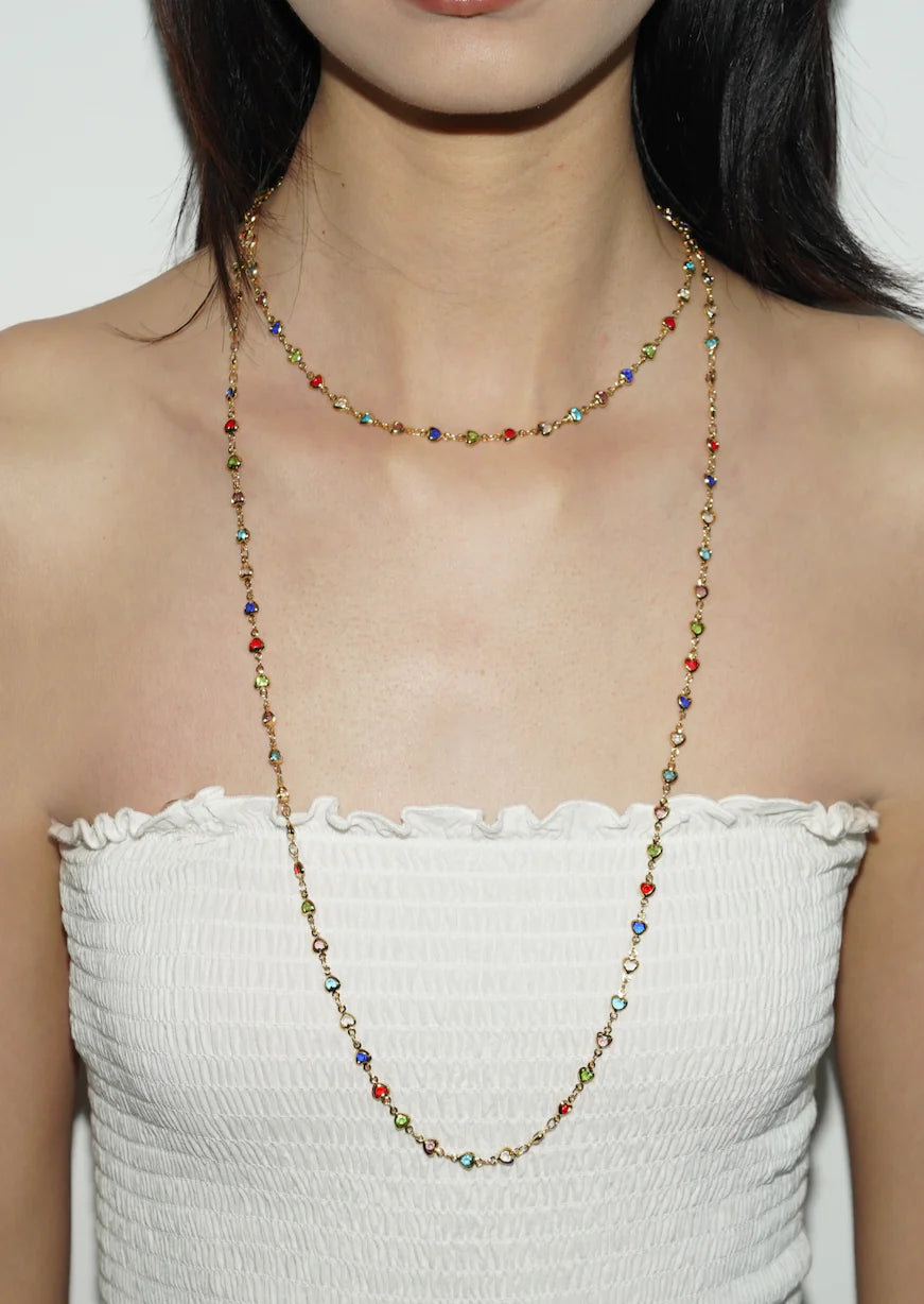 18K Gold Plated Multicolor Heart Y Necklace | Adjustable Lariat | Waterproof
